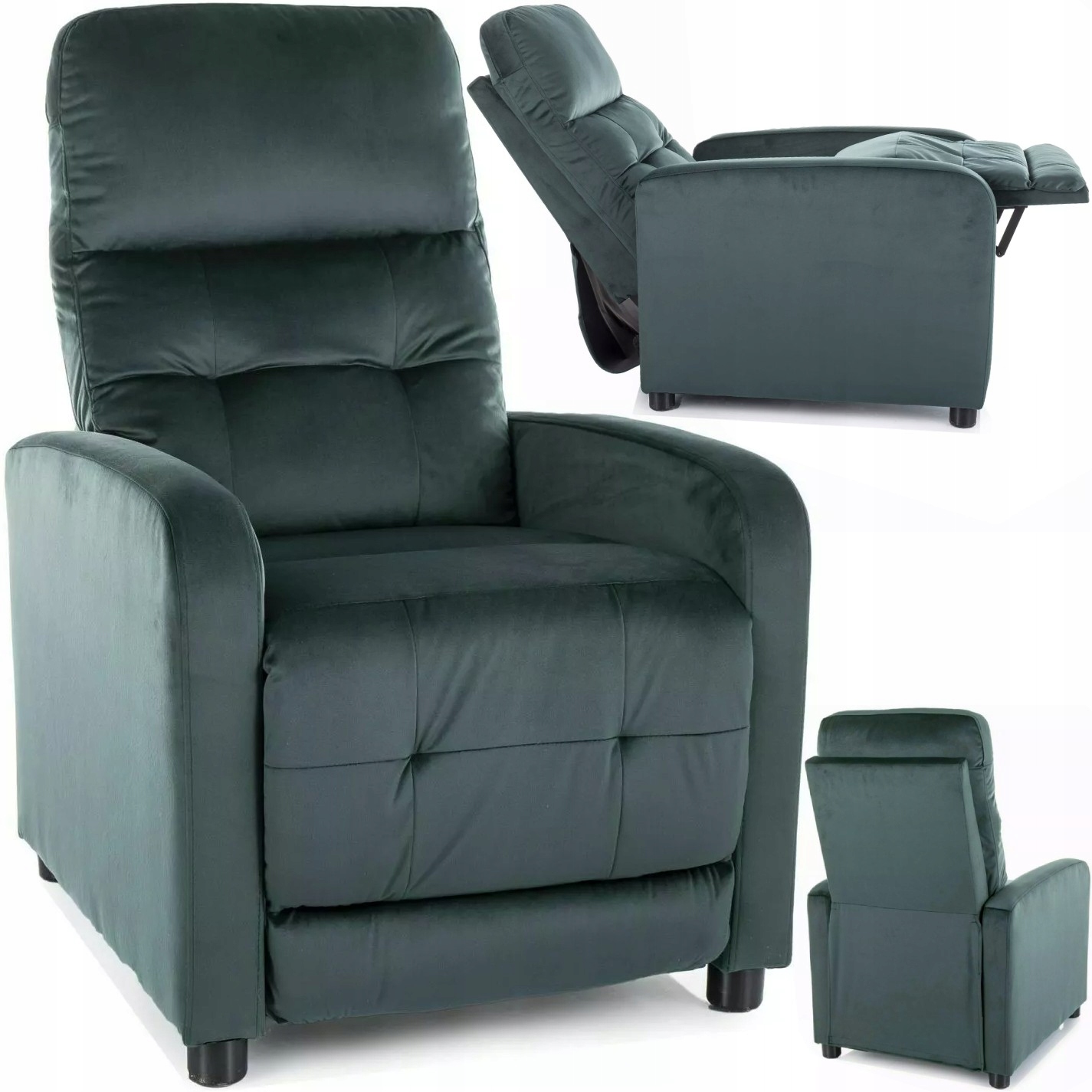 FOTEL ROZKŁADANY WYPOCZYNKOWY Z PODNÓŻKIEM ZIELONY Otus Velvet SIGNAL