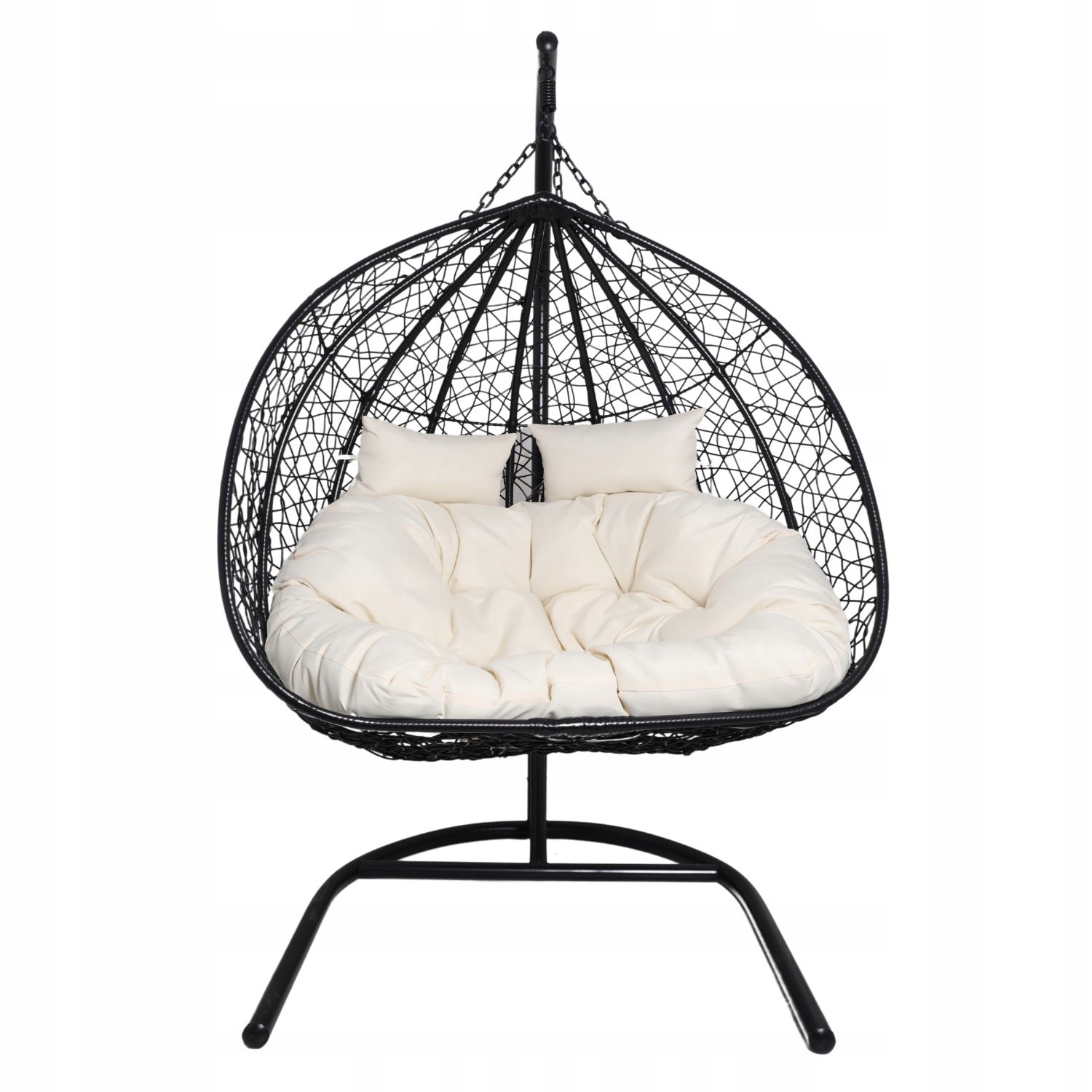 Wiszący fotel dwuosobowy – czarny kokon z beżową poduszką