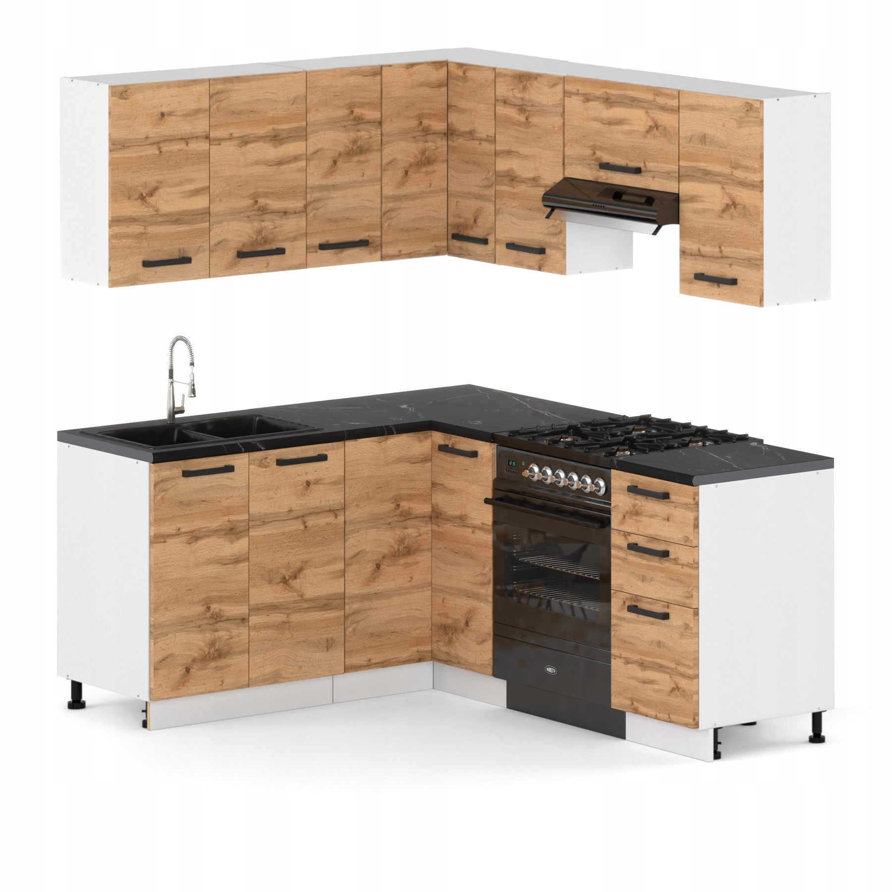 MEBLE KUCHENNE KUCHNIA ZESTAW SZAFKI MODUŁOWE BLAT MILAN NAROŻNA DĄB WOTAN